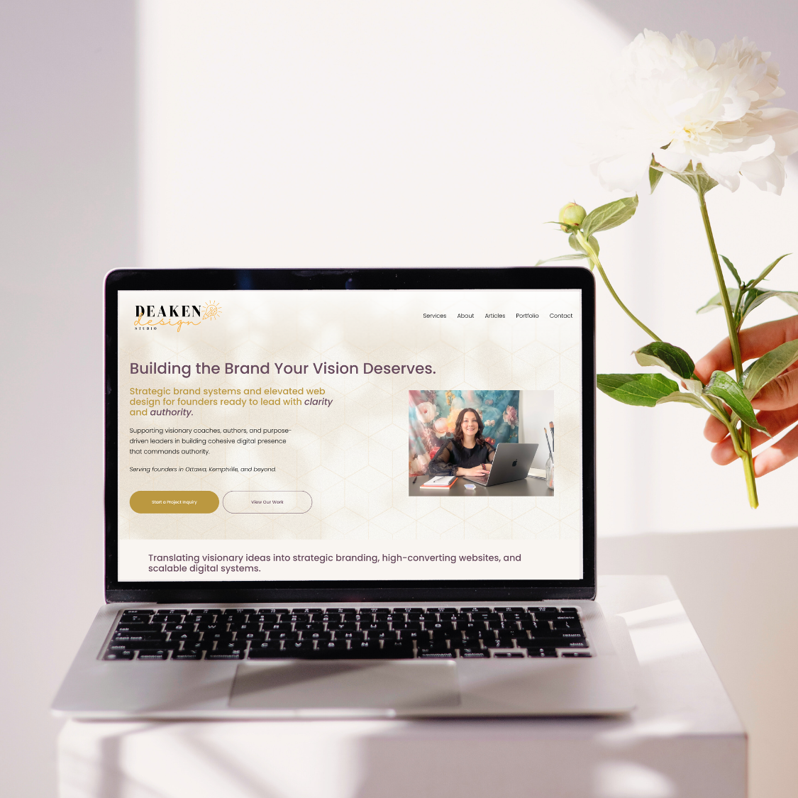 At Deaken Design Studio, I design strategic, conversion-focused websites for founders in Ottawa, Kemptville, Eastern Ontario, and across Canada. Whether you're launching something new or refining an established brand, your website should do more than look beautiful — it should support measurable growth.